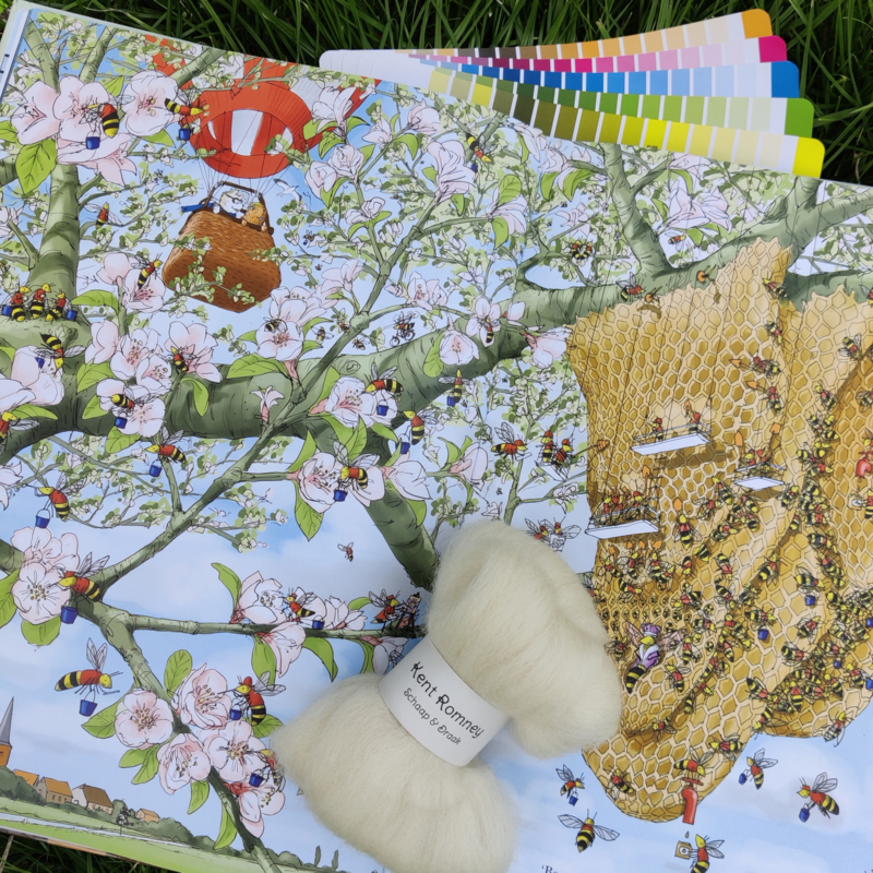 - Een handgeverfde vlecht lontwol van 100 gram Kent Romney